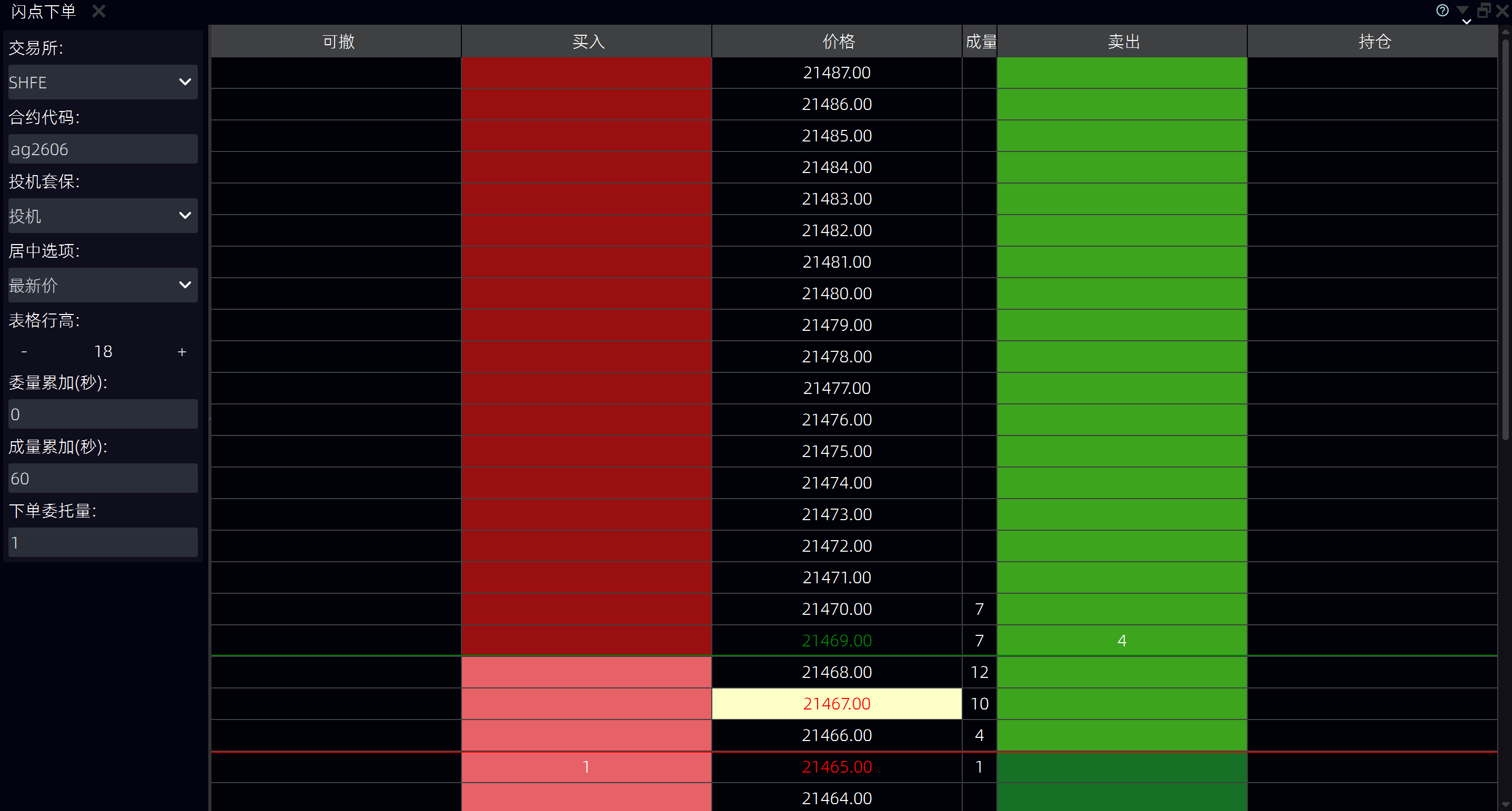 功能说明:快速下单工具,支持鼠标点击价格快速下单。