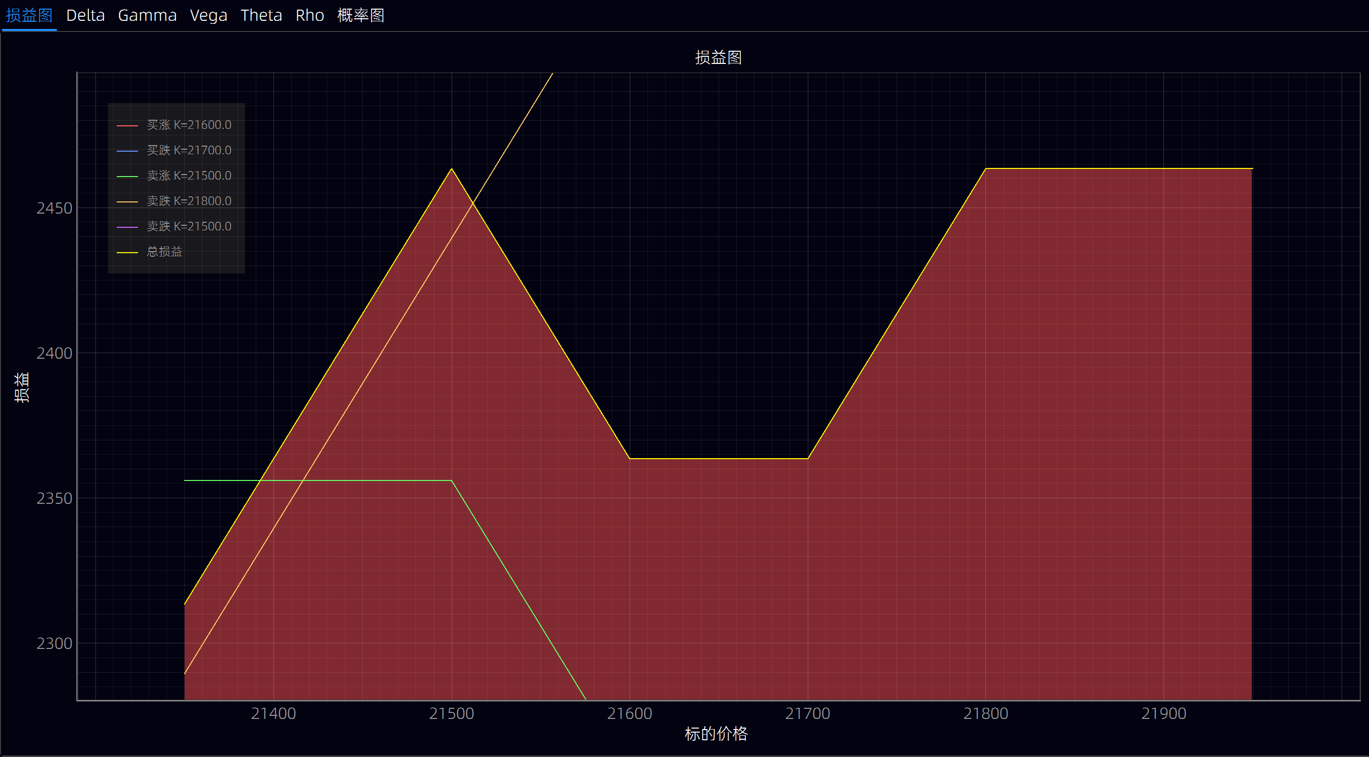 功能说明:提供股票期权的盈亏分析图,帮助用户分析期权策略的风险收益特征。