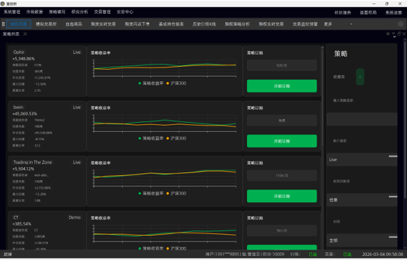 功能说明:管理和监控交易策略,支持策略的启动、停止、编辑等操作。